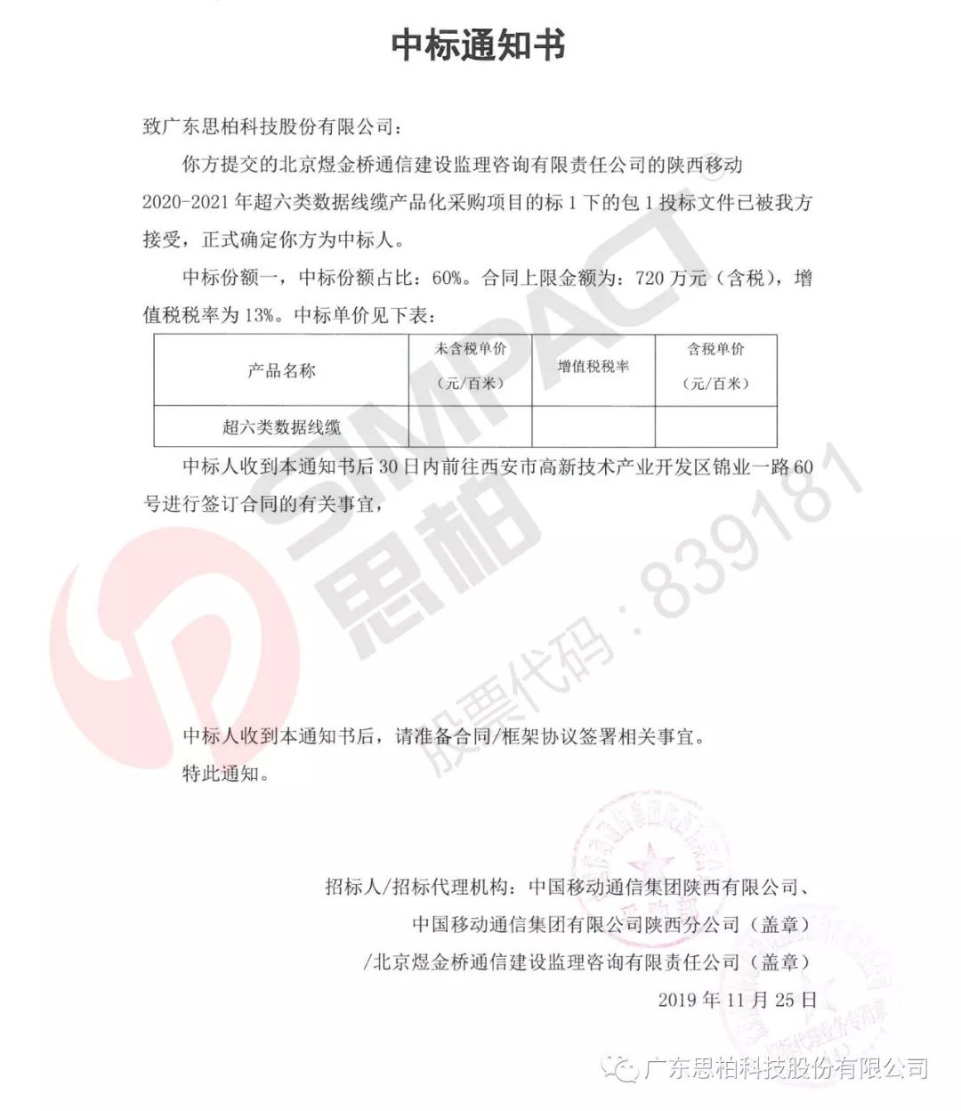 近日,我司收到中国移动通信集团陕西有限公司、北京煜金桥通信建设监理咨询有限责任公司发出的《中标通知书》,确认艳妇乳肉豪妇荡乳A片色戒-印度《性船》无删减-欧美日韩成人精品久久二区-日本久久久亚洲中文字幕-让娇妻故意露屁股给别人看小说成功中标陕西移动2020-2021年超六类数据线缆产品化采购项目!